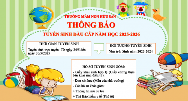 TRƯỜNG MN HỮU SẢN THÔNG BÁO TUYỂN SINH ĐẦU CẤP NĂM HỌC 2025-2026