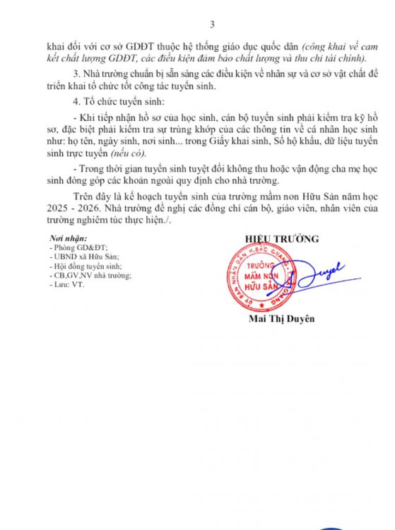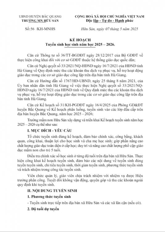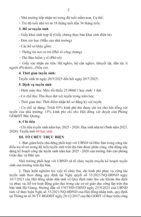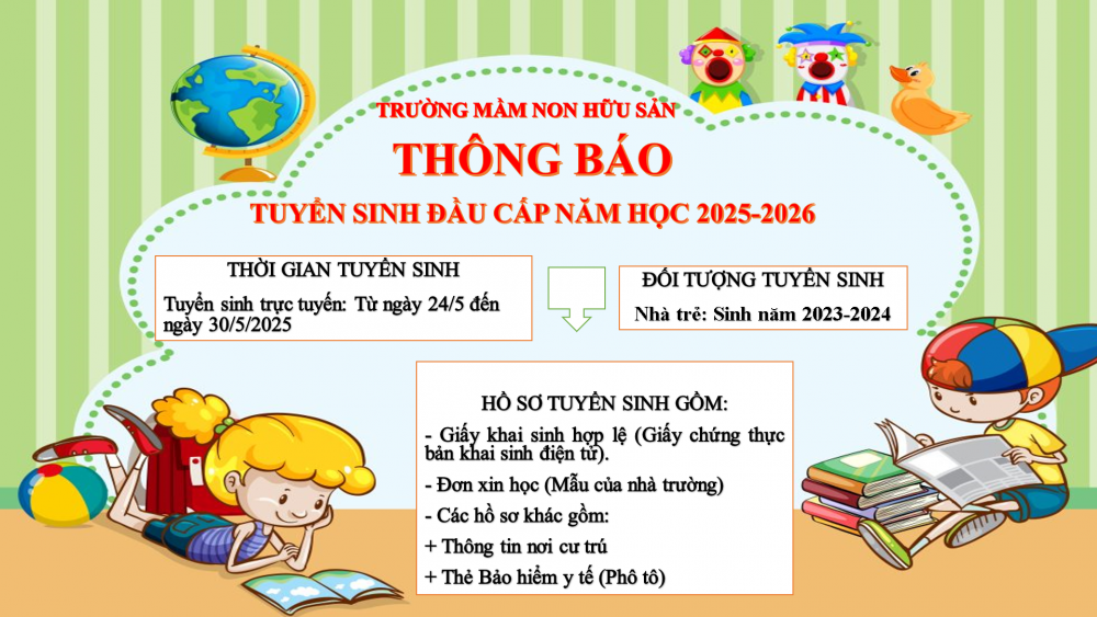 TRƯỜNG MN HỮU SẢN THÔNG BÁO TUYỂN SINH ĐẦU CẤP NĂM HỌC 2025-2026