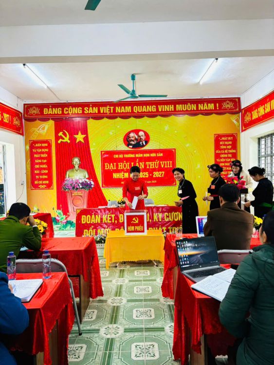 Đại hội đã tiến hành bầu ra 05 đồng chí vào Chi ủy nhiệm kỳ mới gồm những đồng chí có đủ phẩm chất, năng lực và tâm huyết, để dẫn dắt Chi bộ trong nhiệm kỳ mới để dẫn dắt Chi bộ trong nhiệm kỳ mới hoàn thành các mục tiêu của Đại hội và tiếp tục xây dựng Chi bộ ngày càng vững mạnh. Với sự tín nhiệm cao đồng chí Mai Thị Duyên tiếp tục được bầu làm Bí thư Chi bộ trường Mầm non Hữu Sản nhiệm kỳ 2025-2027. Đại hội cũng đã bầu ra 04 đại biểu đi dự Đại hội Đảng bộ xã lần thứ XII, nhiệm kỳ 2025-2030.