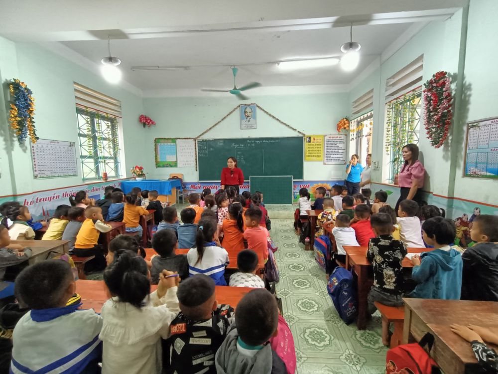 Hoạt động trải nghiệm "Tham quan trường Tiểu học" của các con mẫu giáo 5-6 tuổi, Trường mầm non Hữu Sản