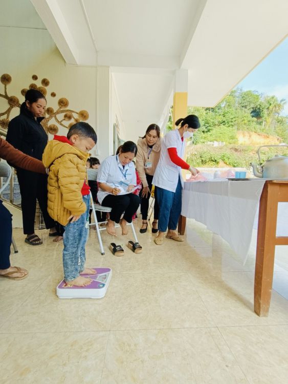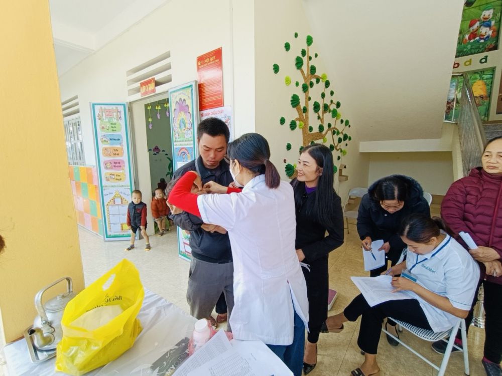 Hôm nay ngày 08/12/ 2023 Trường Mầm non Hữu Sản phối hợp với Trạm Y tế xã Hữu Sản tổ chức khám sức khỏe định kỳ cho 100% các cháu trong nhà trường với các nội dung kiểm tra: Cân nặng, chiều cao, khám tai, mắt, mũi, họng, kiểm tra tim phổi và một số bệnh liên quan đến đường hô hấp, da liễu, uống thuốc tẩy giun và uống vitamin...